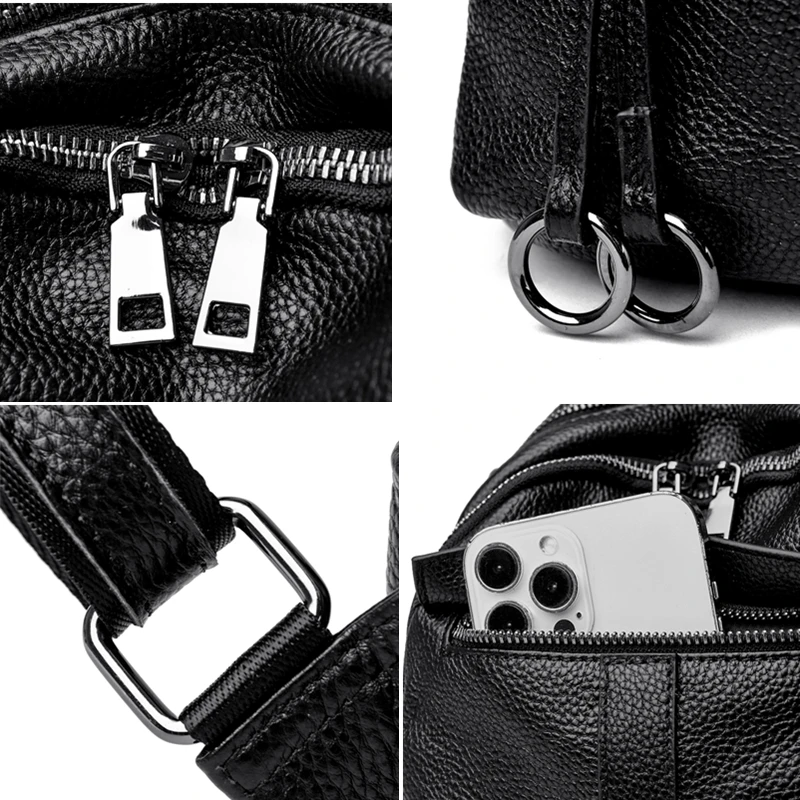 Hand-stitched from premium genuine cowhide leather, this backpack offers a sleek silhouette enhanced by refined metal hardware and buttery-soft texture. Designed for modern women who value both aesthetics and practicality, it transitions effortlessly from city errands to elegant evenings.
