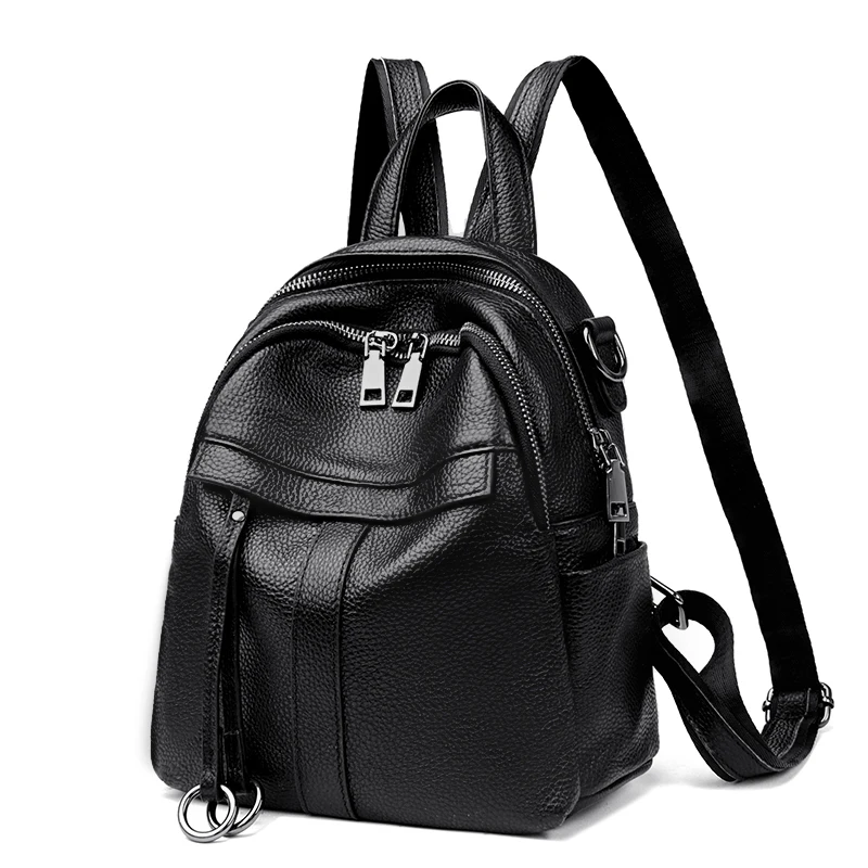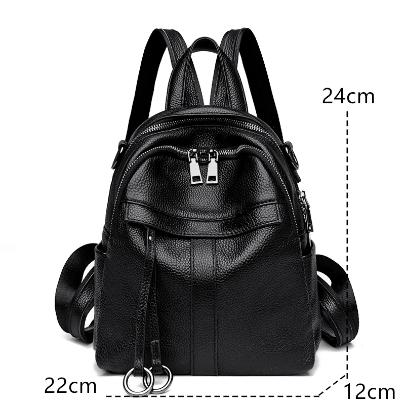 Women’s Genuine Leather Luxury Backpack – Black-on-Black Street Style