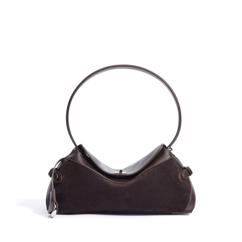The Bordeaux Arc Bag – Sculpted Suede & Leather Top Handle